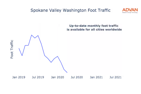 This shows the citywide foot traffic in Spokane Valley, WA for the last few years.:
