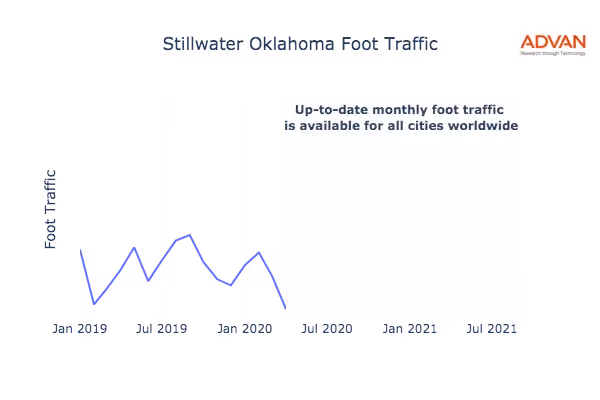 This shows the citywide foot traffic in Stillwater, OK for the last few years.: