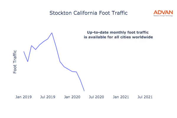This shows the citywide foot traffic in Stockton, CA for the last few years.: