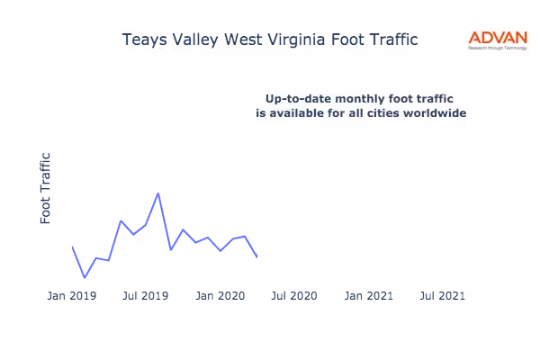 This shows the citywide foot traffic in Teays Valley, WV for the last few years.: