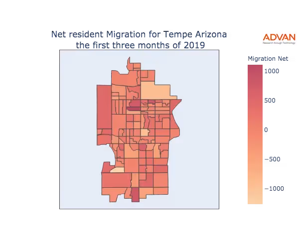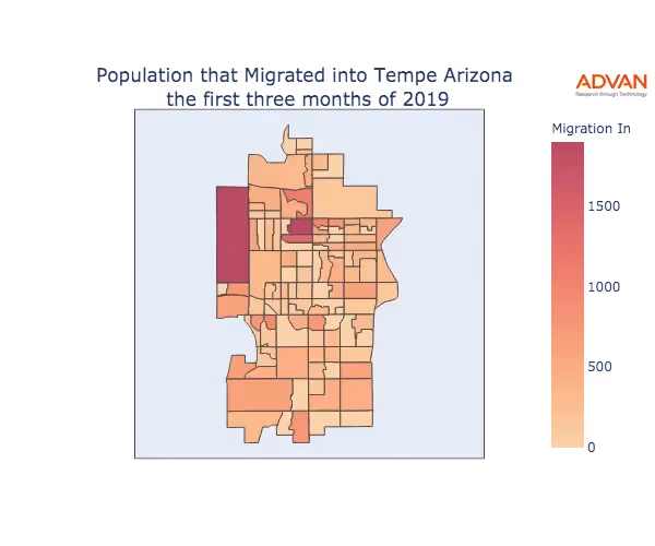 The map below shows the migration into Tempe, AZ by Census Block Group (CBG).