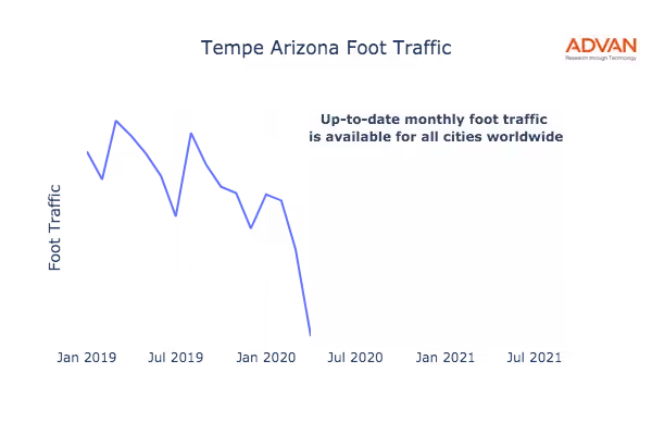 Up-to-date monthly foot traffic is available for all cities worldwide.
