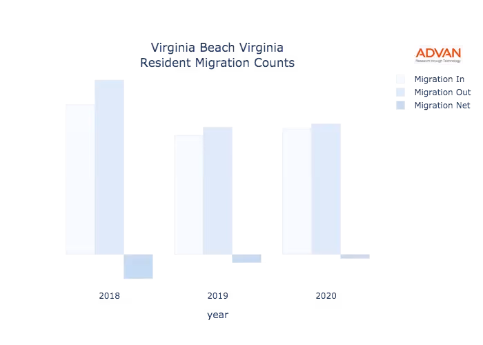 This chart shows the number of residents that moved to Virginia Beach, VA