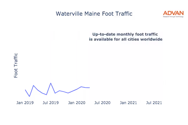 This shows the citywide foot traffic in Waterville, ME for the last few years.: