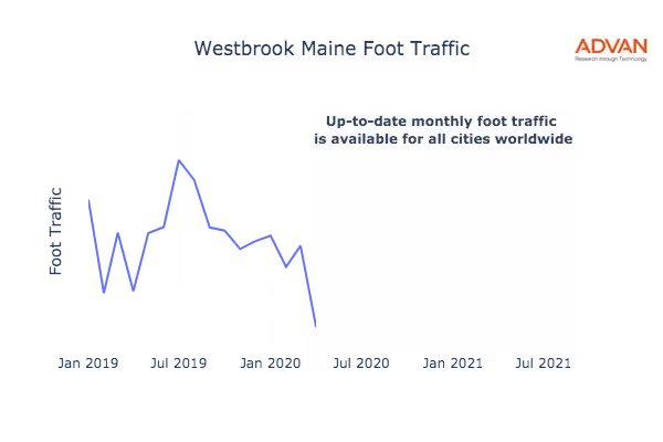This shows the citywide foot traffic in Westbrook, ME for the last few years.:
