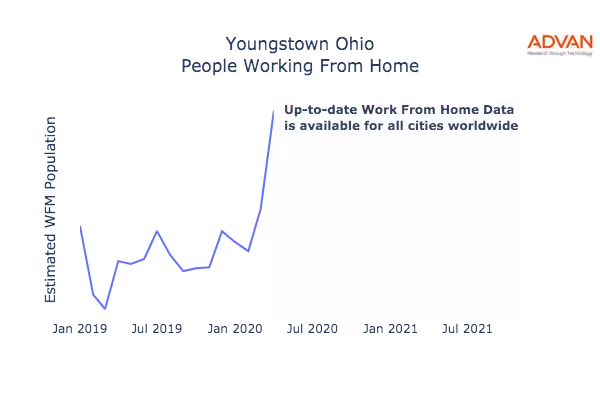 This chart shows the number of people that are working from home, using mobility data to determine their home and work location. The trend in most places has been that more people are working from home during the pandemic.