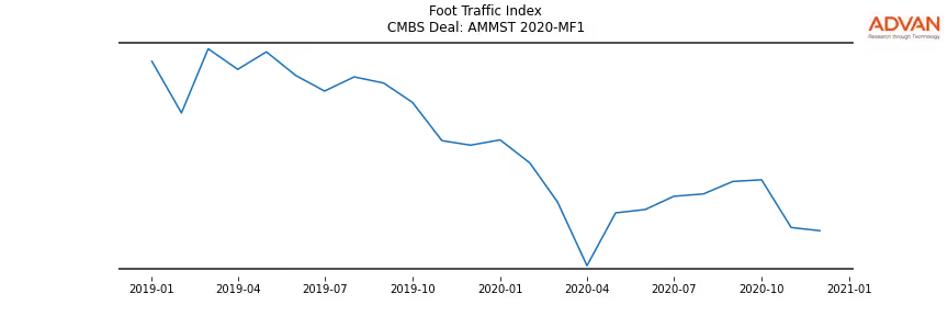 Advan Research computes accurate daily foot-traffic for all the properties and loans of the AMMST 2020-MF1 deal. Here is the foot-traffic aggregated across all the properties of the deal: