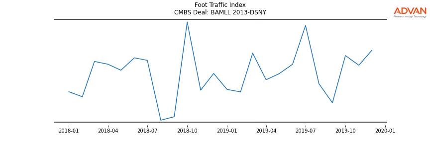 Advan Research computes accurate daily foot-traffic for all the properties and loans of the BAMLL 2013-DSNY deal. Here is the foot-traffic aggregated across all the properties of the deal: