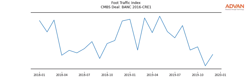 Advan Research computes accurate daily foot-traffic for all the properties and loans of the BANC 2016-CRE1 deal. Here is the foot-traffic aggregated across all the properties of the deal: