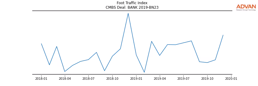 Advan Research computes accurate daily foot-traffic for all the properties and loans of the BANK 2019-BN23 deal. Here is the foot-traffic aggregated across all the properties of the deal: