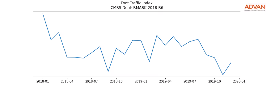 Advan Research computes accurate daily foot-traffic for all the properties and loans of the BMARK 2018-B6 deal. Here is the foot-traffic aggregated across all the properties of the deal: