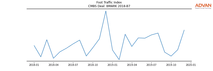 Advan Research computes accurate daily foot-traffic for all the properties and loans of the BMARK 2018-B7 deal. Here is the foot-traffic aggregated across all the properties of the deal: