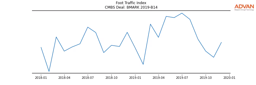 Advan Research computes accurate daily foot-traffic for all the properties and loans of the BMARK 2019-B14 deal. Here is the foot-traffic aggregated across all the properties of the deal: