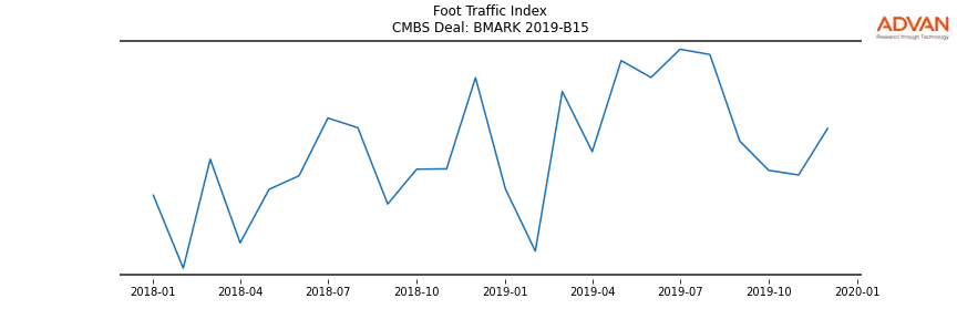 Advan Research computes accurate daily foot-traffic for all the properties and loans of the BMARK 2019-B15 deal. Here is the foot-traffic aggregated across all the properties of the deal: