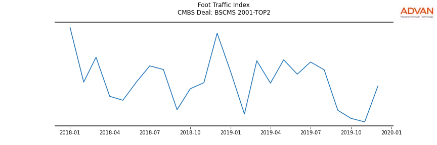 Advan Research computes accurate daily foot-traffic for all the properties and loans of the BSCMS 2001-TOP2 deal. Here is the foot-traffic aggregated across all the properties of the deal: