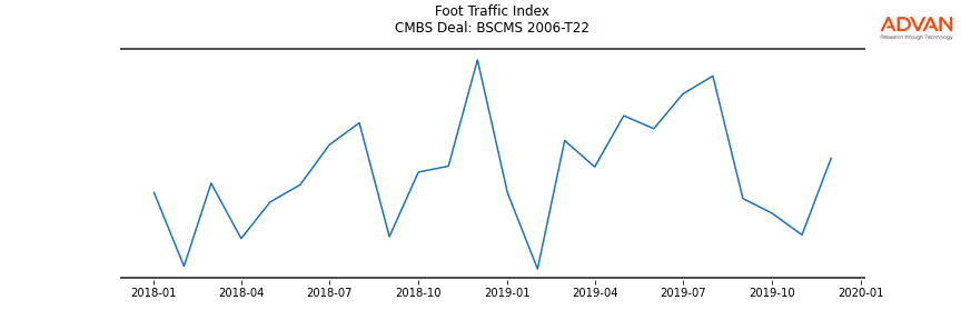 Advan Research computes accurate daily foot-traffic for all the properties and loans of the BSCMS 2006-T22 deal. Here is the foot-traffic aggregated across all the properties of the deal: