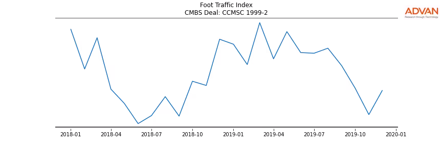 Advan Research computes accurate daily foot-traffic for all the properties and loans of the CCMSC 1999-2 deal. Here is the foot-traffic aggregated across all the properties of the deal: