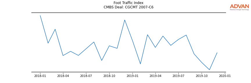 Advan Research computes accurate daily foot-traffic for all the properties and loans of the CGCMT 2007-C6 deal. Here is the foot-traffic aggregated across all the properties of the deal: