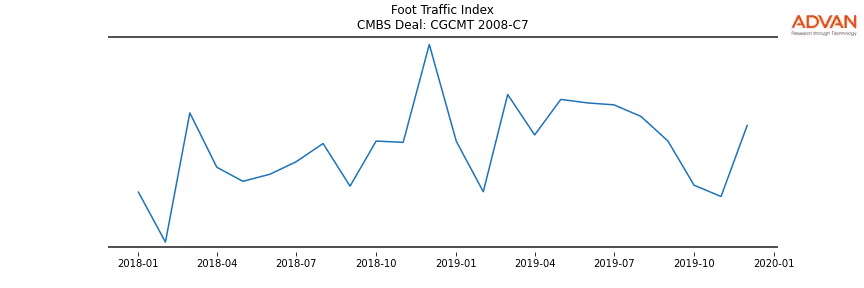 Advan Research computes accurate daily foot-traffic for all the properties and loans of the CGCMT 2008-C7 deal. Here is the foot-traffic aggregated across all the properties of the deal: