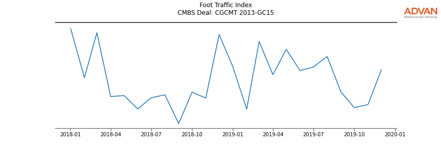 Advan Research computes accurate daily foot-traffic for all the properties and loans of the CGCMT 2013-GC15 deal. Here is the foot-traffic aggregated across all the properties of the deal: