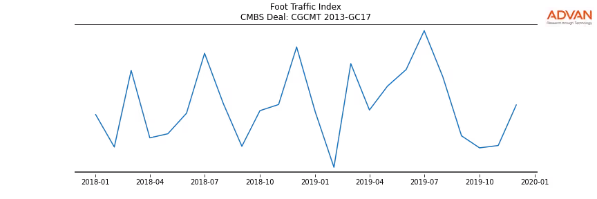 Advan Research computes accurate daily foot-traffic for all the properties and loans of the CGCMT 2013-GC17 deal. Here is the foot-traffic aggregated across all the properties of the deal: