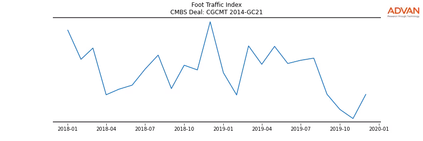 Advan Research computes accurate daily foot-traffic for all the properties and loans of the CGCMT 2014-GC21 deal. Here is the foot-traffic aggregated across all the properties of the deal: