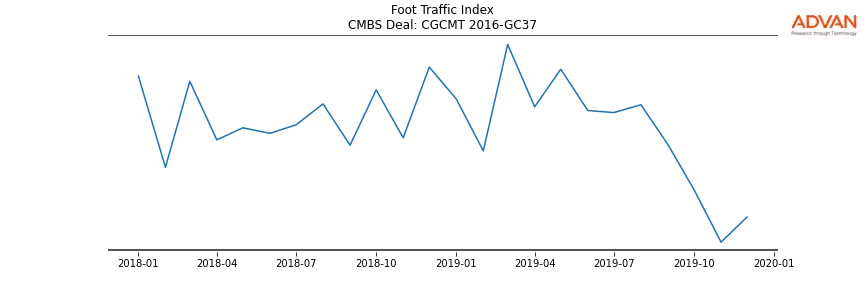 Advan Research computes accurate daily foot-traffic for all the properties and loans of the CGCMT 2016-GC37 deal. Here is the foot-traffic aggregated across all the properties of the deal: