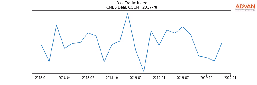 Advan Research computes accurate daily foot-traffic for all the properties and loans of the CGCMT 2017-P8 deal. Here is the foot-traffic aggregated across all the properties of the deal: