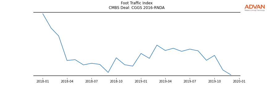 Advan Research computes accurate daily foot-traffic for all the properties and loans of the CGGS 2016-RNDA deal. Here is the foot-traffic aggregated across all the properties of the deal: