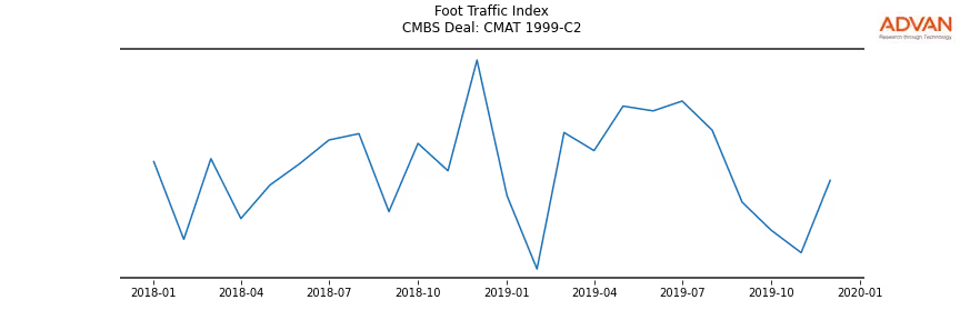 Advan Research computes accurate daily foot-traffic for all the properties and loans of the CMAT 1999-C2 deal. Here is the foot-traffic aggregated across all the properties of the deal: