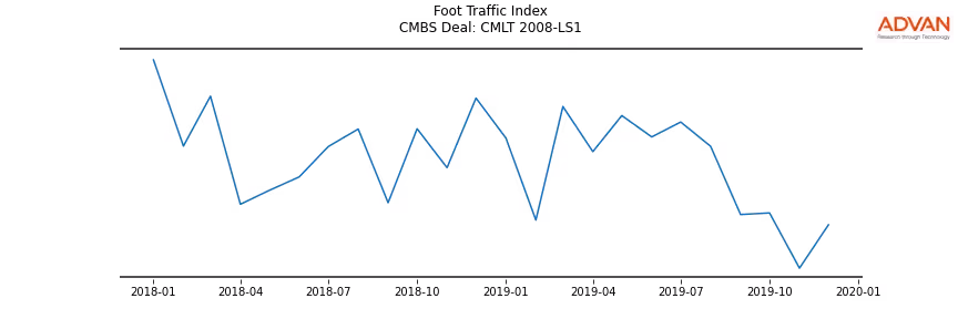 Advan Research computes accurate daily foot-traffic for all the properties and loans of the CMLT 2008-LS1 deal. Here is the foot-traffic aggregated across all the properties of the deal: