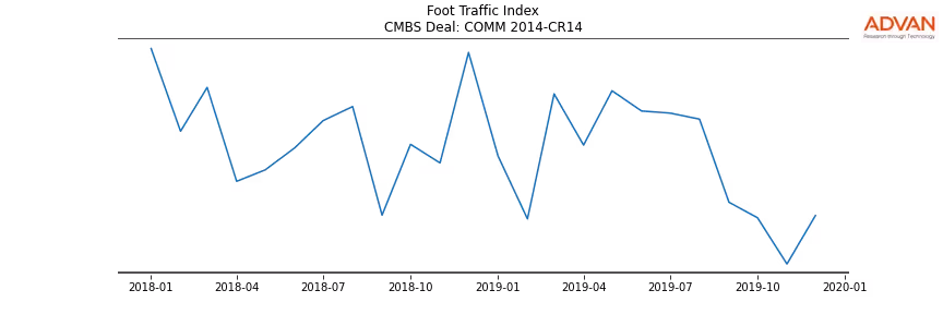 Advan Research computes accurate daily foot-traffic for all the properties and loans of the COMM 2014-CR14 deal. Here is the foot-traffic aggregated across all the properties of the deal: