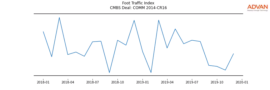 Advan Research computes accurate daily foot-traffic for all the properties and loans of the COMM 2014-CR16 deal. Here is the foot-traffic aggregated across all the properties of the deal: