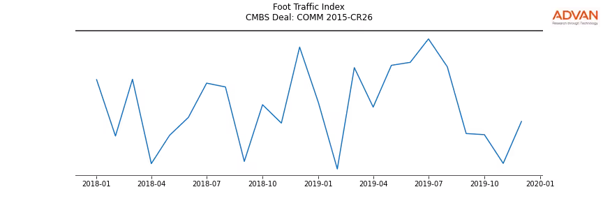 Advan Research computes accurate daily foot-traffic for all the properties and loans of the COMM 2015-CR26 deal. Here is the foot-traffic aggregated across all the properties of the deal: