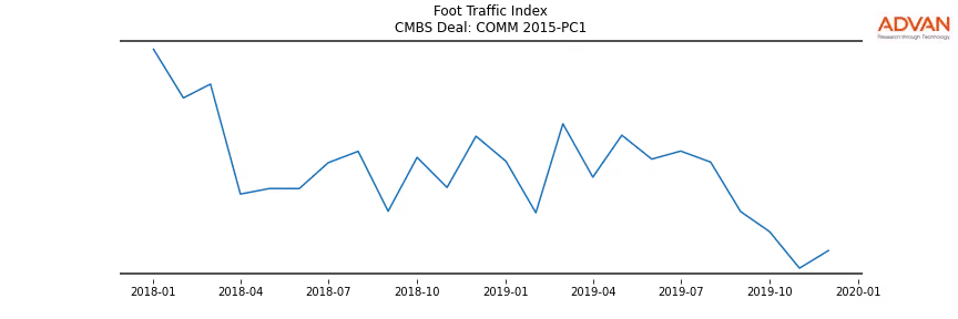 Advan Research computes accurate daily foot-traffic for all the properties and loans of the COMM 2015-PC1 deal. Here is the foot-traffic aggregated across all the properties of the deal: