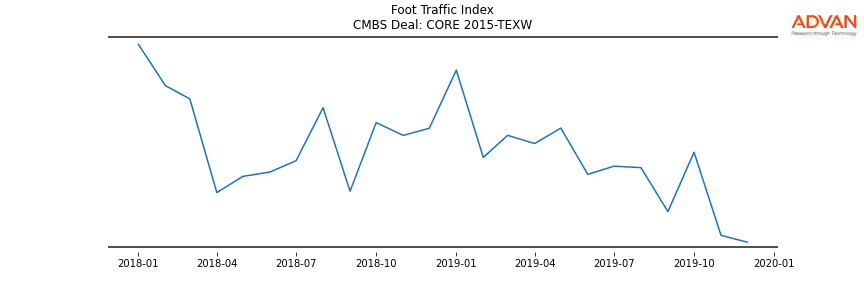 Advan Research computes accurate daily foot-traffic for all the properties and loans of the CORE 2015-TEXW deal. Here is the foot-traffic aggregated across all the properties of the deal: