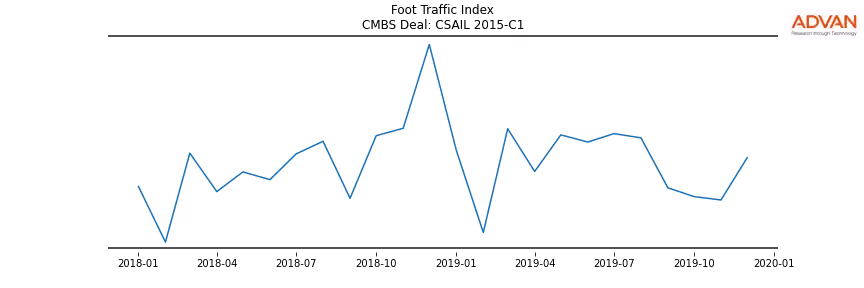 Advan Research computes accurate daily foot-traffic for all the properties and loans of the CSAIL 2015-C1 deal. Here is the foot-traffic aggregated across all the properties of the deal: