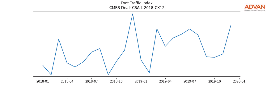 Advan Research computes accurate daily foot-traffic for all the properties and loans of the CSAIL 2018-CX12 deal. Here is the foot-traffic aggregated across all the properties of the deal: