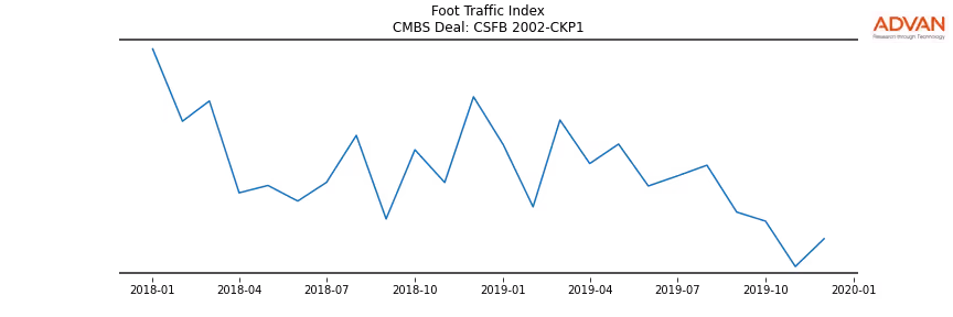 Advan Research computes accurate daily foot-traffic for all the properties and loans of the CSFB 2002-CKP1 deal. Here is the foot-traffic aggregated across all the properties of the deal: