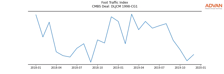 Advan Research computes accurate daily foot-traffic for all the properties and loans of the DLJCM 1998-CG1 deal. Here is the foot-traffic aggregated across all the properties of the deal: