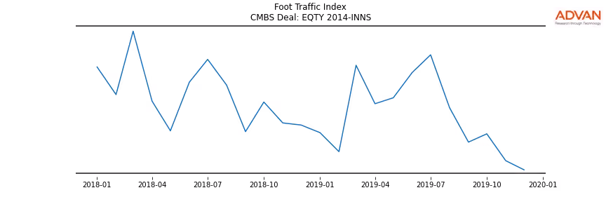 Advan Research computes accurate daily foot-traffic for all the properties and loans of the EQTY 2014-INNS deal. Here is the foot-traffic aggregated across all the properties of the deal: