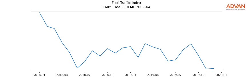 Advan Research computes accurate daily foot-traffic for all the properties and loans of the FREMF 2009-K4 deal. Here is the foot-traffic aggregated across all the properties of the deal: