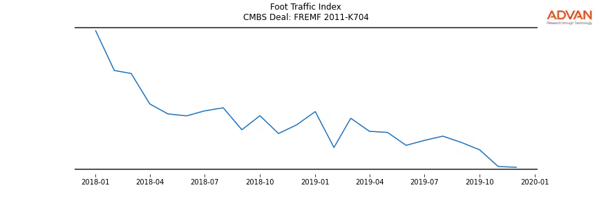 Advan Research computes accurate daily foot-traffic for all the properties and loans of the FREMF 2011-K704 deal. Here is the foot-traffic aggregated across all the properties of the deal: