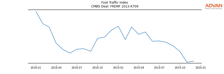 Advan Research computes accurate daily foot-traffic for all the properties and loans of the FREMF 2012-K709 deal. Here is the foot-traffic aggregated across all the properties of the deal: