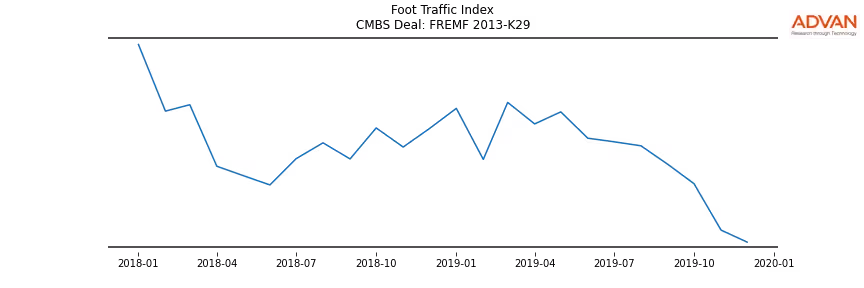 Advan Research computes accurate daily foot-traffic for all the properties and loans of the FREMF 2013-K29 deal. Here is the foot-traffic aggregated across all the properties of the deal: