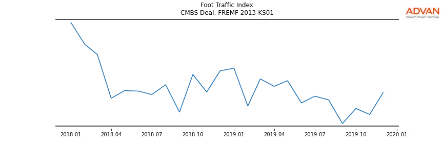 Advan Research computes accurate daily foot-traffic for all the properties and loans of the FREMF 2013-KS01 deal. Here is the foot-traffic aggregated across all the properties of the deal: