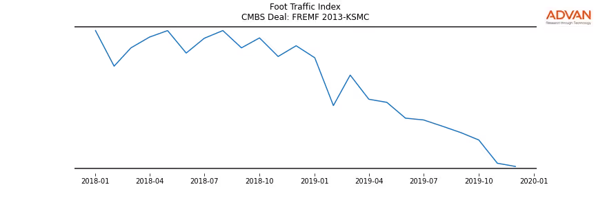 Advan Research computes accurate daily foot-traffic for all the properties and loans of the FREMF 2013-KSMC deal. Here is the foot-traffic aggregated across all the properties of the deal: