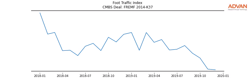 Advan Research computes accurate daily foot-traffic for all the properties and loans of the FREMF 2014-K37 deal. Here is the foot-traffic aggregated across all the properties of the deal: