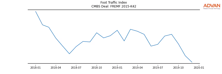 Advan Research computes accurate daily foot-traffic for all the properties and loans of the FREMF 2015-K42 deal. Here is the foot-traffic aggregated across all the properties of the deal: