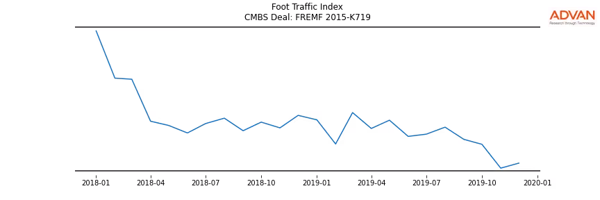 Advan Research computes accurate daily foot-traffic for all the properties and loans of the FREMF 2015-K719 deal. Here is the foot-traffic aggregated across all the properties of the deal: